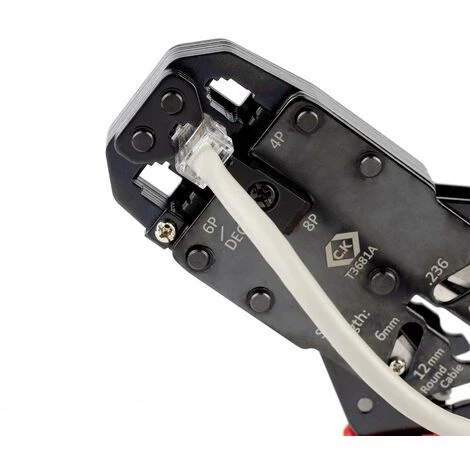 - Capacité : 8P8C (RJ45), 6P6C (RJ12), 6P4C (RJ11), 6P6C/Offset (déc), 4P4C et 4P4CTrès robuste, testé jusqu’à 40 000 applications Poignées ergonomiques à deux composants pour un travail simple et confortable
