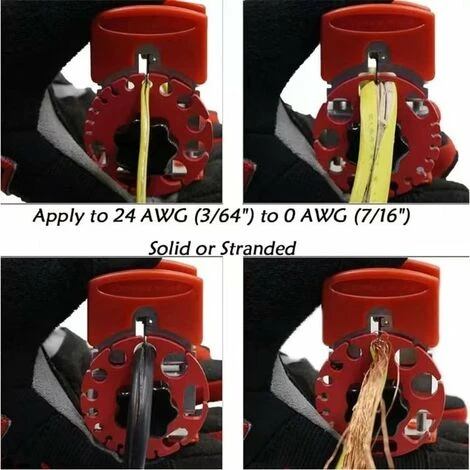 3. Fournir des trous de différentes tailles/formes, adaptés aux bandes de différentes tailles/styles de 24 AWG (3/64) à 0 AWG (7/16), solides ou toronnés.