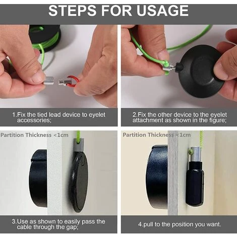 Utilisation simple et efficace : l’extracteur a des trous pour la fixation du cordon de traction, il suffit de passer le cordon ou un cordon spécial à travers les petits trous et de le fixer, puis de laisser les extracteurs magnétiques des deux côtés du tube ou de la plaque et de déplacer doucement l’extracteur autour de l’extérieur du tube pour faire passer le cordon là où vous en avez besoin