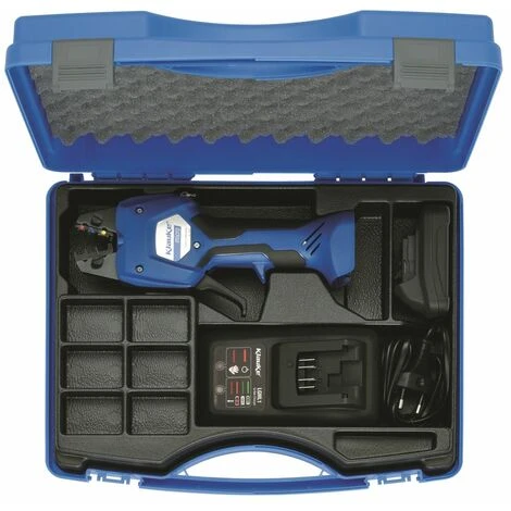 Le micro Klauke avec fonction intuitive puissance Sense combine les avantages de la pince à sertir manuelle avec la commodité d’outils presseurs batterie hydraulique. excellents résultats de sertissage avec un minimum d’effort. 50. pour matrices interchangeables, série fonctionnement d’un levier pour commander toutes les fonctions d’usinage. commande électronique avec fonction de verrouillage surveille la fermeture complète des inserts. Protection de décrochage du moteur par erreur de l’opérateur. Boîtier ergonomique 2K dans Klauke conception en ligne. Anchorage pour une utilisation avec équilibreur ou protection contre les chutes dans le domaine. très faible poids et à haute vitesse pour une efficacité maximale. La technologie d’entraînement puissant pour un travail sans fatigue. Batterie Li-Ion avec indicateur de niveau de charge. LED de lumière pour éclairer le sertissage et l’espace de travail. retour automatique après la fin de sertissage. rétraction manuelle au besoin par la loi contre le fonctionnement du levier. LED multifonctions pour le contrôle de la maintenance et de la transmission de données via l’interface optique et adaptateur USB. logiciel d’enregistrement par projet Klauke i-presse. Livraison: Boîtier en plastique (KKEK50ML). Batterie 10,8 V / 1,5 Ah. Li-ion (16,2 Wh) (RAML1). Chargeur batterie 10,8 V Li-Ion. 230 (LGML1). Matrices pour connecteurs isolés 0,5 -. 6 mm² (IS5071).