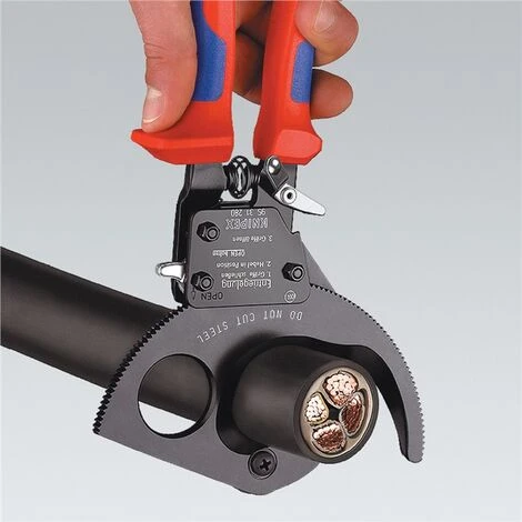 pour couper les câbles en cuivre et en aluminium · monobrin et multibrin · non approprié pour les câbles en acier et métalliques · utilisation à une main grâce à une transmission optimale à levier et au principe de cliquet · utilisation facile · la