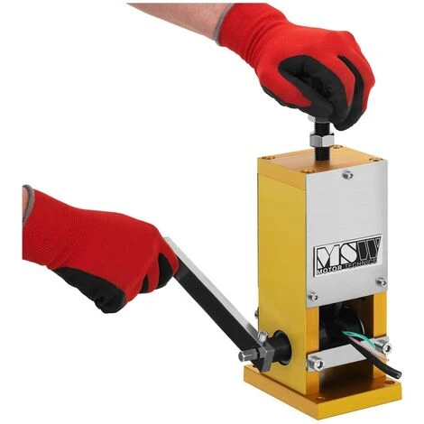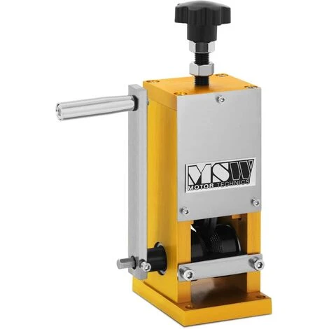 Grâce au dénudeur manuel MSW-WS-006de MSW, vous pourrez retirer rapidement et avec précision l’isolant des câbles et fils électriques et ce, avec une extrême facilitée. Cet appareil professionnel fonctionne parfaitement là où les autres moyens de dénudage traditionnels échouent. La machine à dénuder convient pour un ou plusieurs câbles en cuivre dont le diamètre n’excède pas 25mm. La machine à dénuder, compacte et robuste, est parfaitement adaptée pour être utilisée dans le domaine industriel. L’appareil est fabriqué en tôle d’acier solide et est équipé d’une tête de coupe cylindrique dentée et tranchante. La machine à dénuder de MSW peut être utilisée manuellement grâce à un levier ou bien électriquement à l’aide d’une visseuse électrique. Pour les deux variantes, un mécanisme spécial actionne la roue dentée interne et permet alors d’initialiser le dénudage. Le dénudeur électrique travaille avec une tête de coupe cylindrique. Le câble sera dénudé de son isolant au moyen d’une coupure très précise.