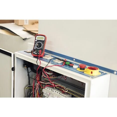 Ce multimètre digital CAT III avec écran LCD dispose de 5 fonctions. Il permet de mesurer une tension jusqu’à 600V continue ou alternative, un courant continu jusqu’à 10A, une résistance jusqu’à 200M ohms et de tester une diode. La fonction Hold permet de ne pas interrompre la mesure.