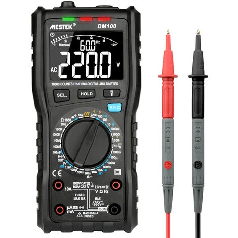 Précision du courant continu: 99,99 µA ~ 600 mA: ± (0,8% de lecture + 3 chiffres); 10A: ± (1,2% lecture + 3 chiffres)