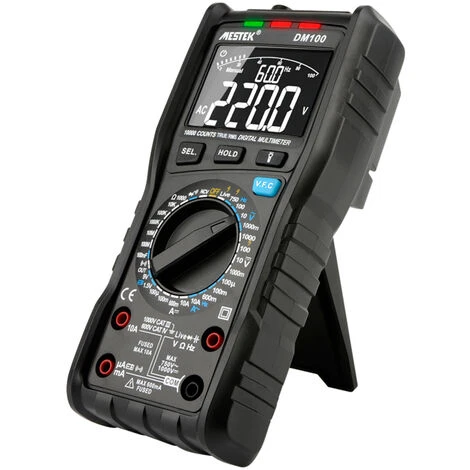 Mesure rapide de tension, résistance, capacité. Fonction de mesure de tension à fréquence variable VFC, tension de mesure sans contact NCV, test de fréquence de courant alternatif et courant, diode d’identification automatique et activation / désactivation.