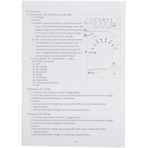 Gamme de tension de mesure: 400mV / 4V / 40V / 400V / 600V