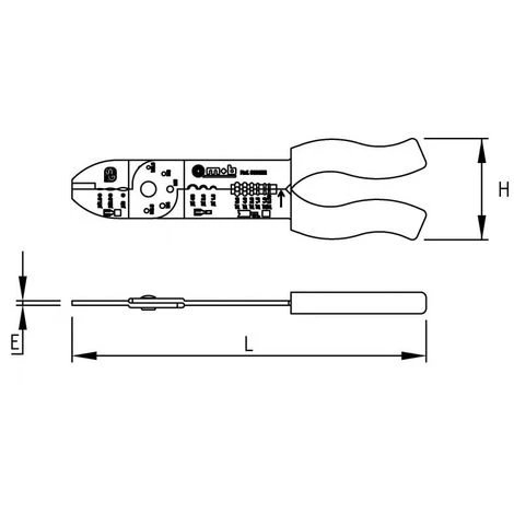 Pince à sertir Mob Outillage : Description de la pince à sertir Mob Outillage : Sertissage : cosses pré-isolées : 1,5-2,5-6 mm Cosses nues : 1,5-2,5-6 mm Dénudage 0,75 à 6 mm et coupe-fil Coupe-vis de M2,6 à M5 Manche bimatière Certifié GS Caractéristiques techniques de la pince à sertir Mob Outillage : L en mm : 235 E en mm : 4 H en mm : 58