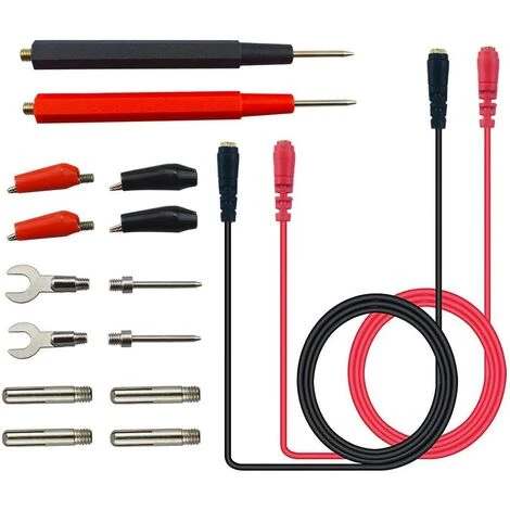 Cbles de test de sonde multimtre multifonctions cble Pince test d’alligator Ensemble d’outils: cbles de test multifonctions, double isolation en PVC avec fiche banane de diamtre standard. Les pointes de sonde pointues rendent le travail lectrique plus facile et plus prcis. .